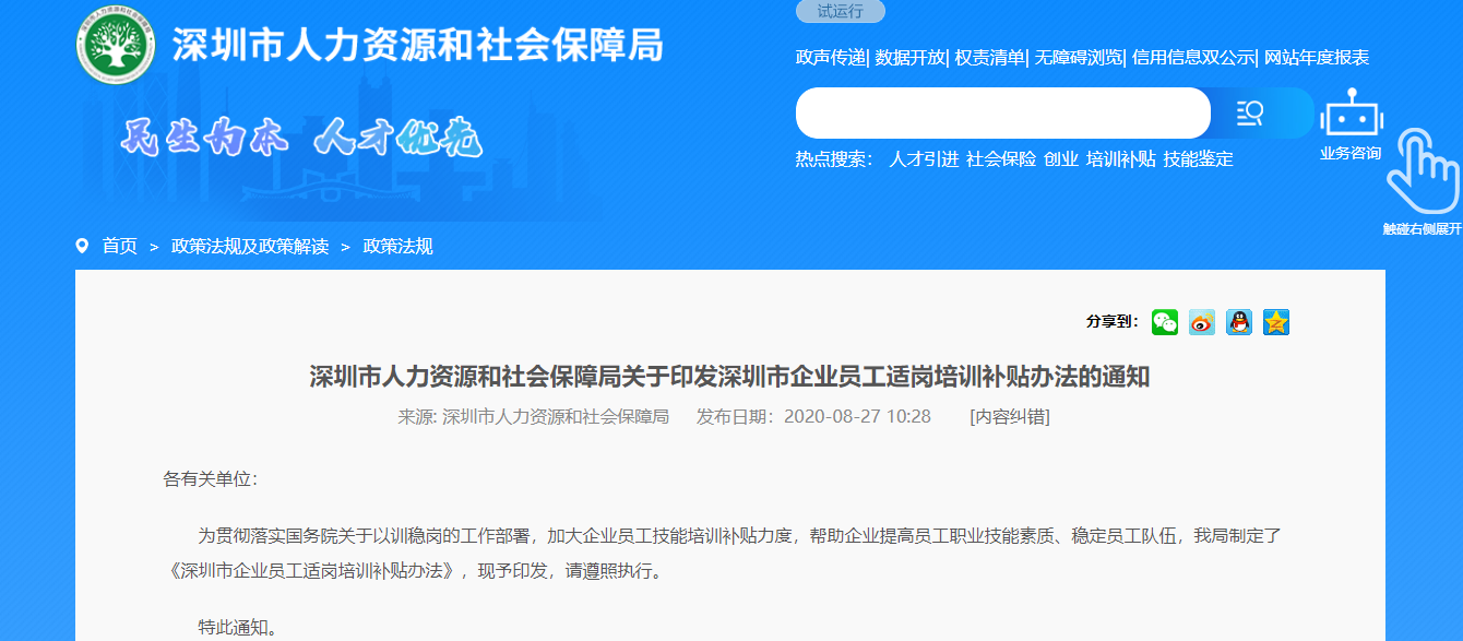 为帮助企业降低培训成本,提高员工职业技能素质,提升企业核心竞争力,深圳市推出了企业员工适岗培训补贴通知,加大对企业员工技能培训的补贴力度,鼓励企业组织开展线上线下职业技能培训,适岗培训补贴最高可领1500元/人!若企业有1000名符合条件的员工,则最高可申请补贴150万元/年!