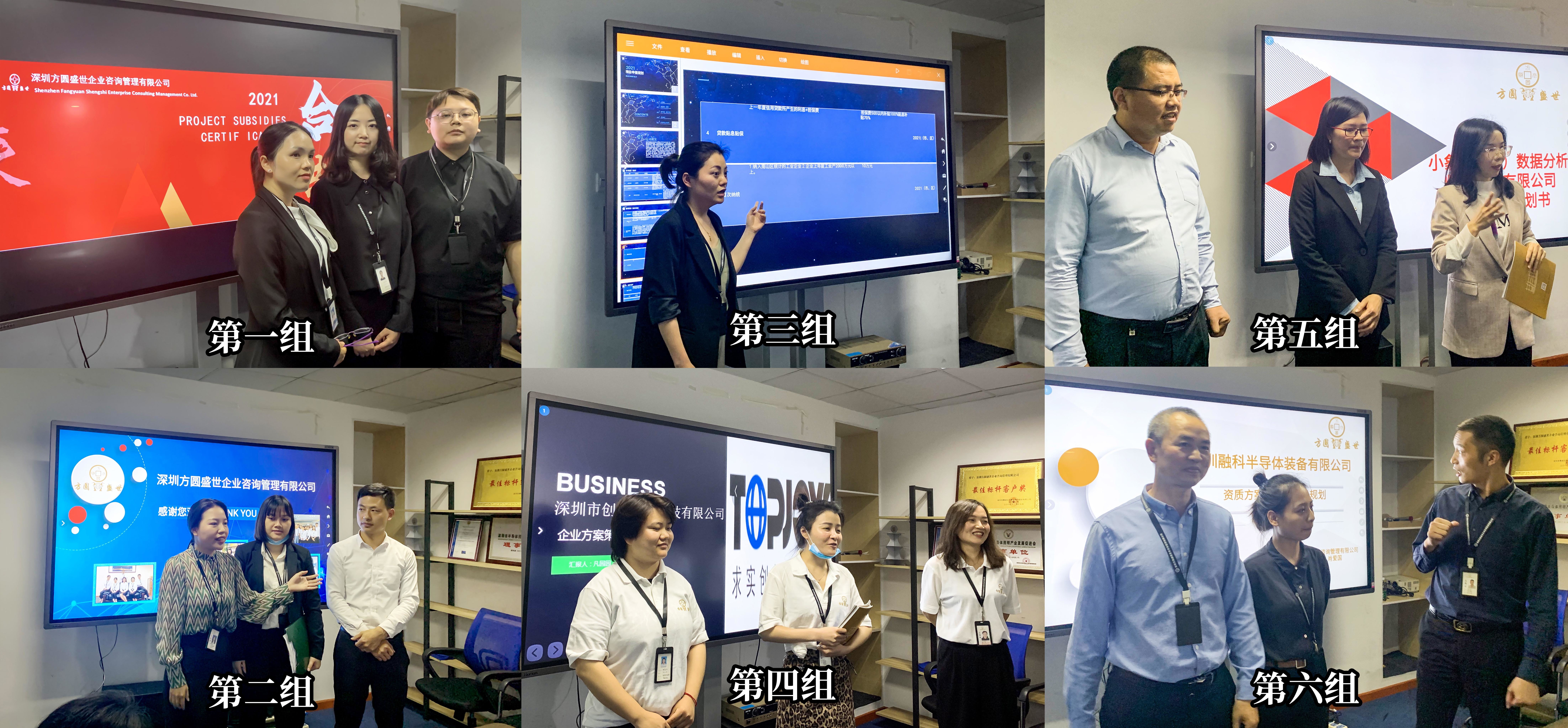 评委组代表甲方客户,分别由总经理与资料辅导老师组成。演讲组由市场部门同事抽签组队(共六队),各自代表企业向甲方客户进行营销方案阐述。