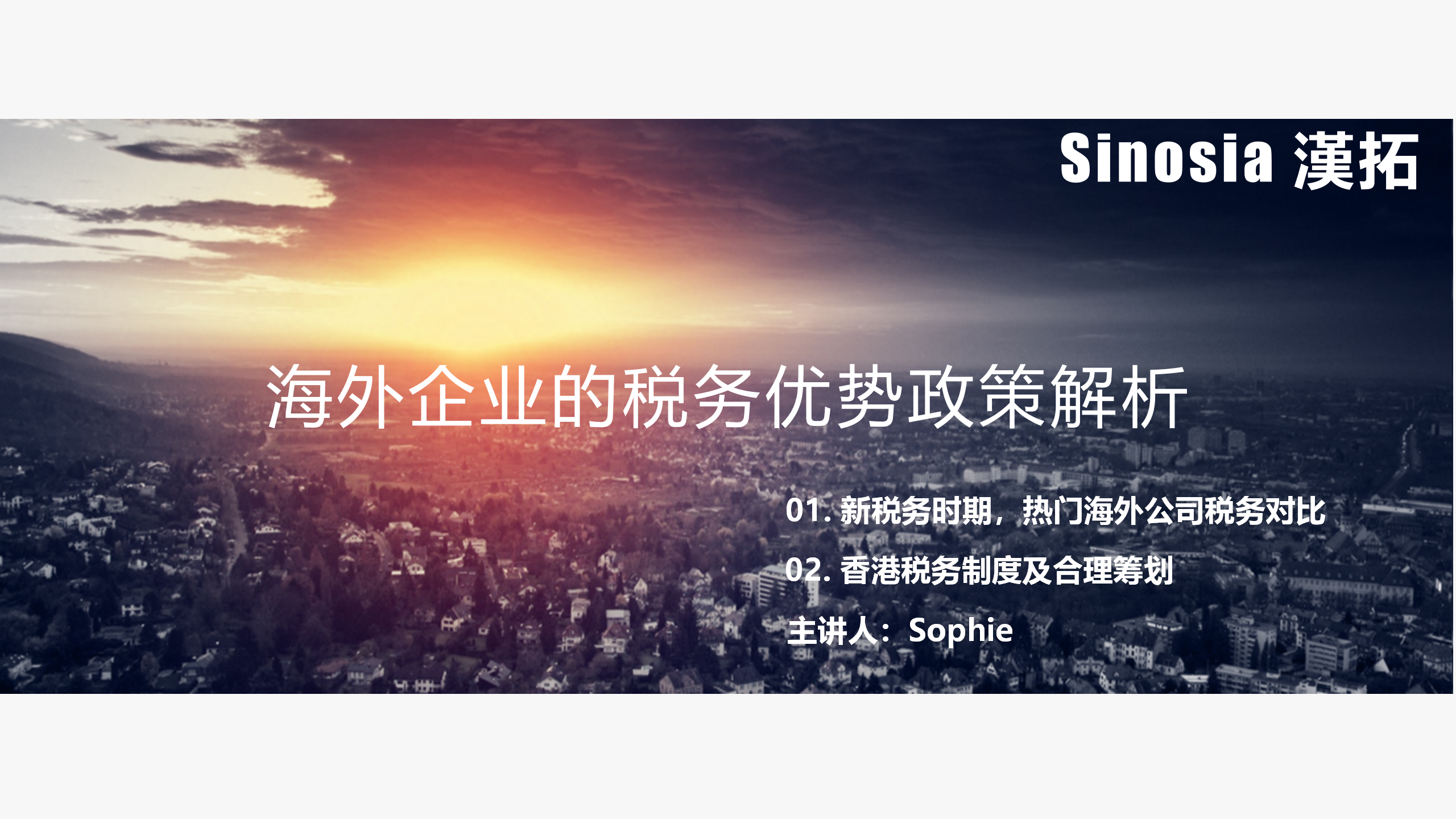 由汉拓咨询带来的关于“海外企业税务优势政策解析”主要内容分以“新税务时期,热门海外公司税务对比”和“香港税务制度及合理筹划”进行讲解。