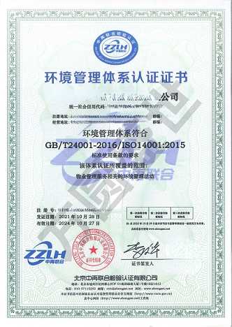 ISO14001:2015环境管理体系:确保企业的环境管理达到国际标准,促使企业生产环境、排污、节能环保达到相关要求,标志着企业绿色环保的理念。