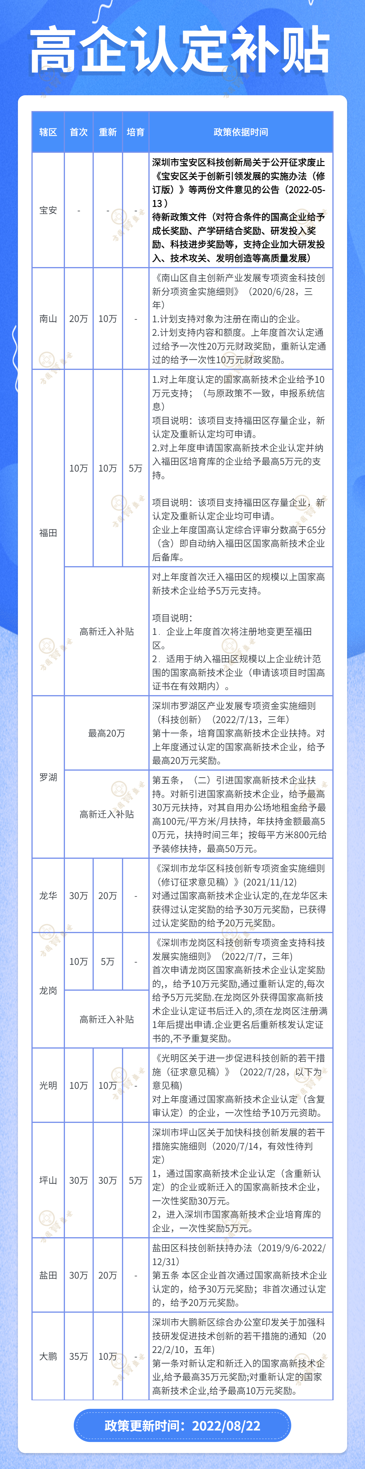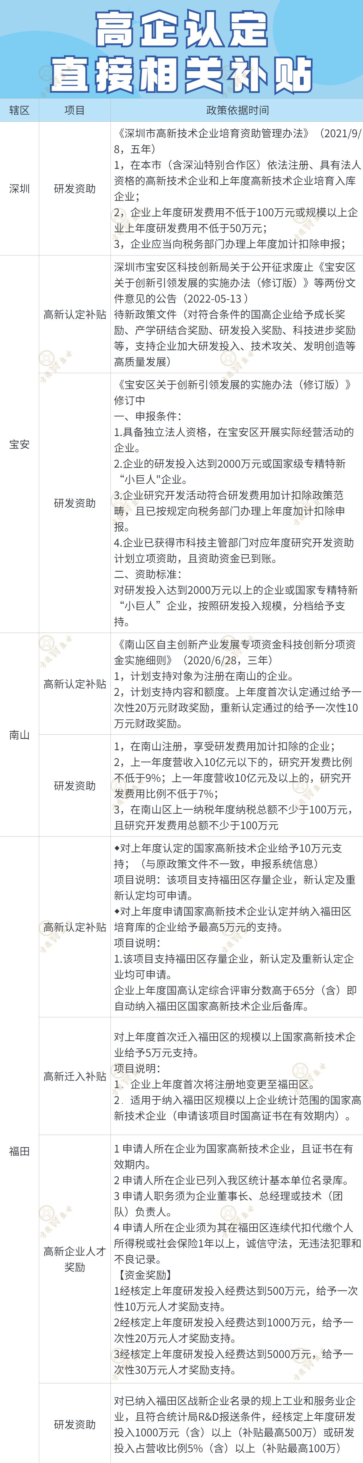 【最新最全】深圳市级区级高新企业补贴汇总,高新政策利好频出!