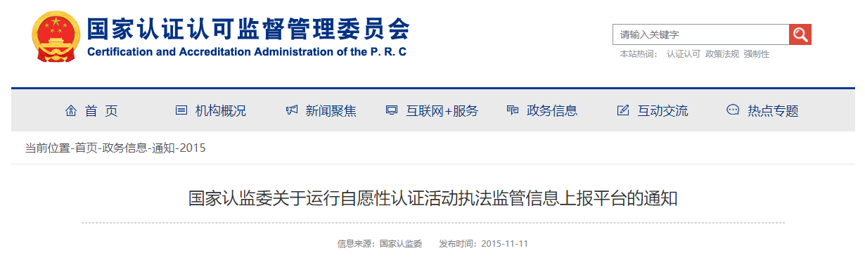 信息来源:国家认监委