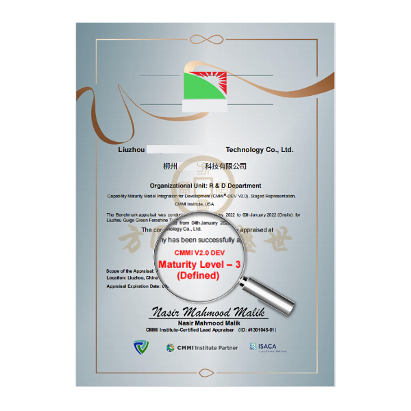 CMM软件能力成熟度模型是美国国防部委托CMU-SEI(卡耐基梅隆大学的软件工程协会)开发的一套标准,用以对软件承包商的开发能力进行评估。也是一个针对产品与服务发展的流程改善成熟度模式,它包含发展与维护的最佳执行方法,涵盖了产品从起始到交付与维护的生命周期。通过CMMI评估与认证对于企业的价值在于,CMMI的系统模型和技术规范保证了企业可以获得全球最权威的软件技术开发和管理能力的认可。