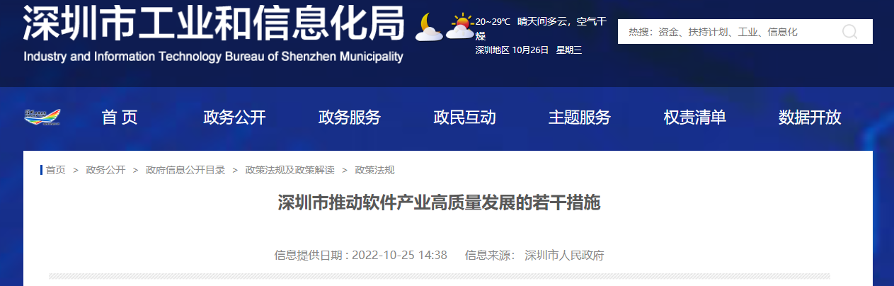 近日,深圳市工业和信息化局发布《深圳市推动软件产业高质量发展的若干措施》(下称《若干措施》)。《若干措施》从明确产业重点发展方向、构建技术创新体系、优化产业空间布局、人才引培、市场主体培育、应用推广、资金保障等七个方面推出二十条具体工作措施。措施具体内容如下:
