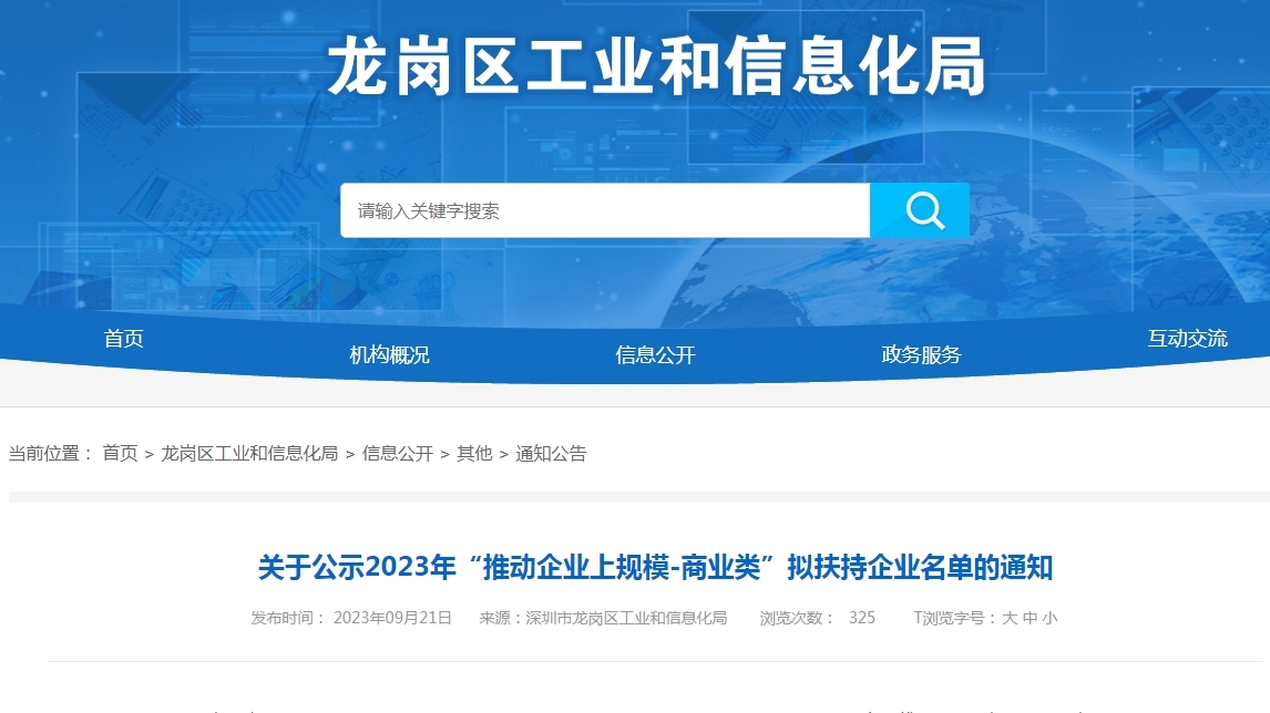 根据《深圳市龙岗区工业和信息化产业发展专项资金关于支持商贸和服务业发展实施细则》第四条“推动企业上规模”有关规定,现将拟扶持企业名单予以公示(详见附件)。