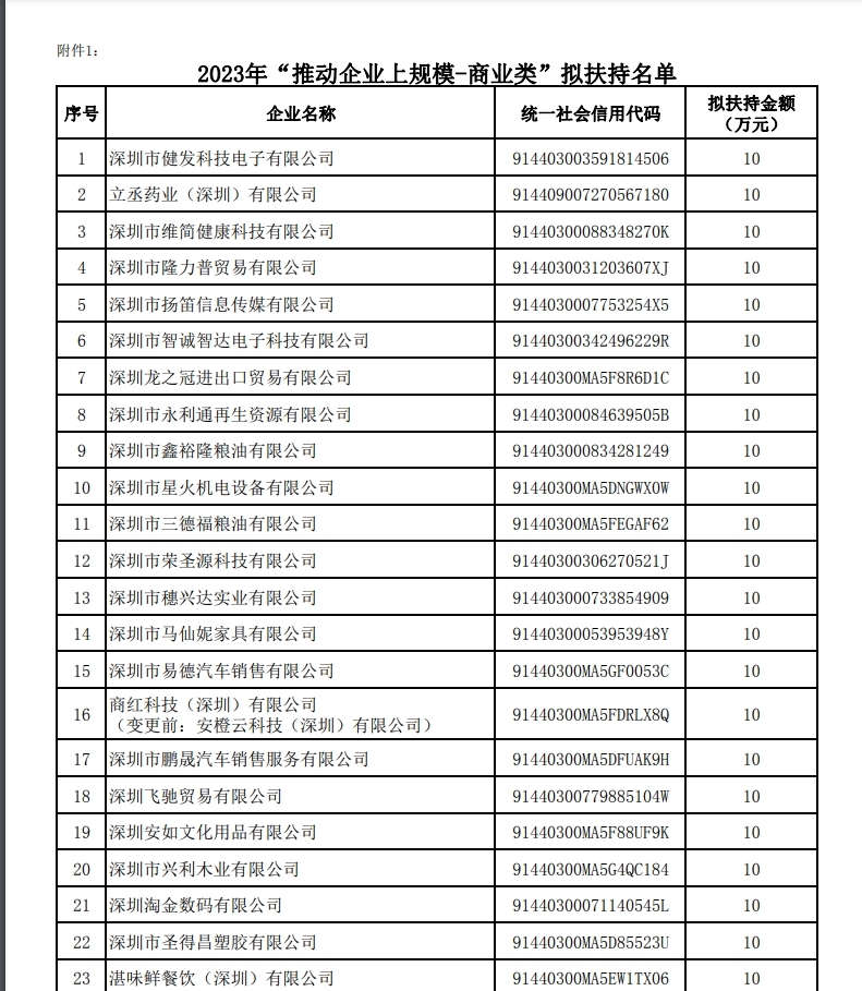 1.2023年“推动企业上规模-商业类”拟扶持企业名单