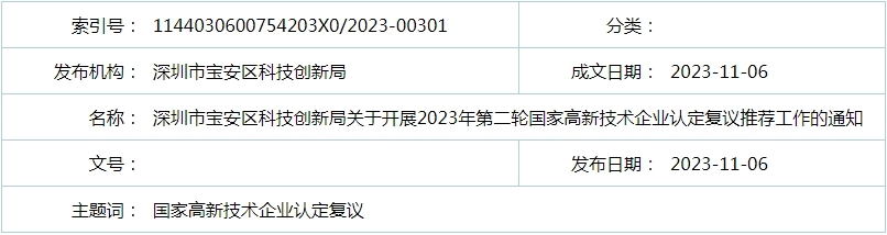 深圳市科技创新委员会短信通知的2023年度国家高新技术企业认定第5批未通过企业(综合评分70分及以下)。