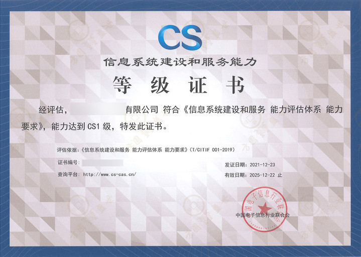 CS信息系统建设和服务能力等级证书分为CS1至CS5五个等级,每个等级都有相应的评估标准和要求。其中,CS1级是最低等级,也是企业申请的基础等级根。