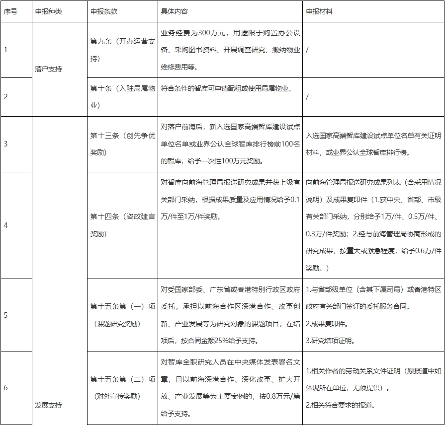根据《前海智库办法》,在前海合作区实际运营且符合下列要求之一的智库可申报发展支持: