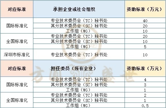 主导深圳市团体标准研制的,按项目给予5万元的资助,每个社会团体或产业联盟每年获得的深圳市社会团体标准资助总额不超过30万元。社会团体或产业联盟制定的系列标准原则上视为一项标准。