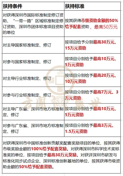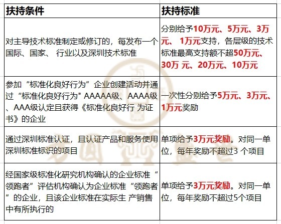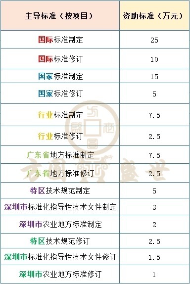 1.主导龙岗区团体标准制定,并获得深圳市打造深圳标准专项资金资助的企业或社会组织。按项目给予:1个项目8万元资助,2个项目16万元资助,最高不超过共16万元的资助。
