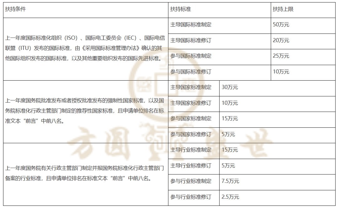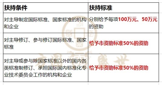 2.主导国家标准制定的,按项目给予不超过50万元的资助;参与国家标准制定的,按项目给予不超过25万元的资助。