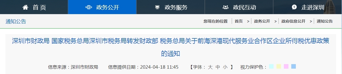 现将《财政部 税务总局关于前海深港现代服务业合作区企业所得税优惠政策的通知》(财税〔2024〕13号)转发给你们,并提出以下意见,请一并贯彻执行。