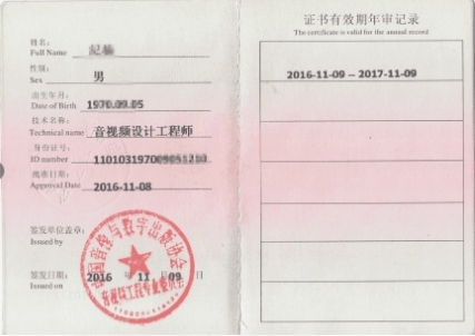 4、申报一级培训4名音视频工程设计师、2名音响调音员。