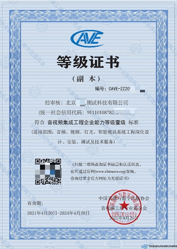 3.提升企业荣誉:音视频资质作为国家对于从事音频、视频、灯光、智能视讯系统集成工程深化设计、安装、调试及维修服务工程企业的综合技术能力认可的证书,当企业对外宣传时,会有力地证明公司实力,提高公司在需求方的知名度。