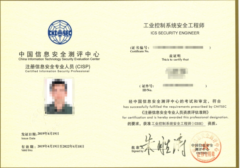 CISP注册信息安全工程师证书展示
