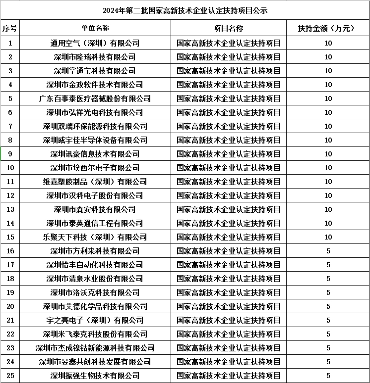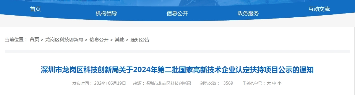 根据《深圳市龙岗区经济与科技发展专项资金管理办法》《深圳市龙岗区科技创新专项资金支持科技发展实施细则》有关规定,龙岗区科技创新局对2024年第二批国家高新技术企业认定扶持项目共593项进行资助,现予以公示,向社会征求意见。