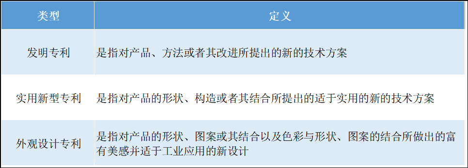在我国,专利分为发明专利、实用新型专利和外观设计专利三种类型。