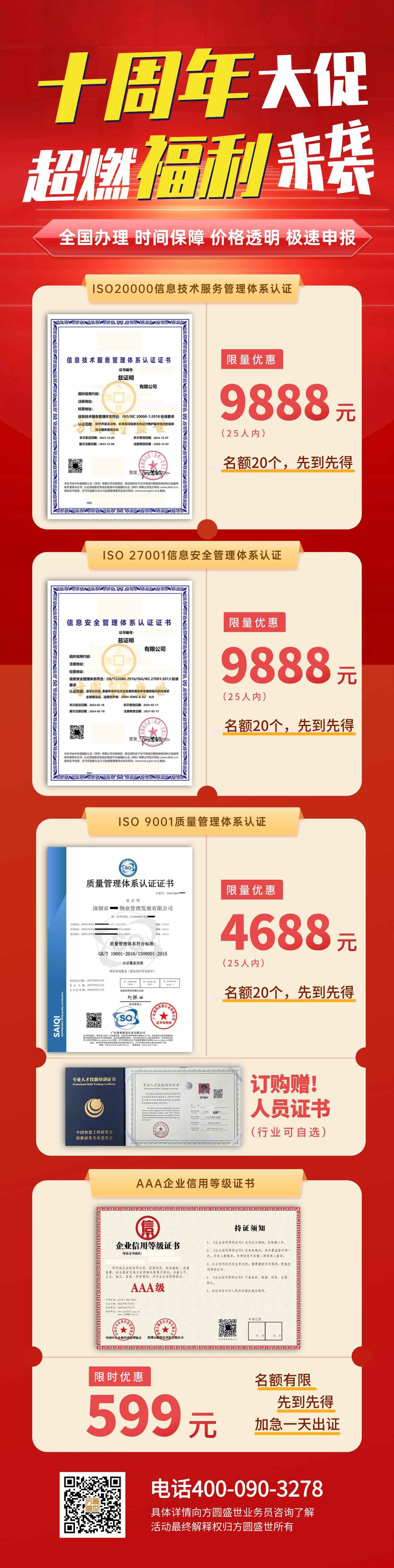 ISO 20000 信息技术服务管理体系认证 9888元/件 不仅能为企业在投标中加分,还能在企业内部管理、客户信任、市场推广等方面带来诸多益处,对企业的长期发展具有重要意义
