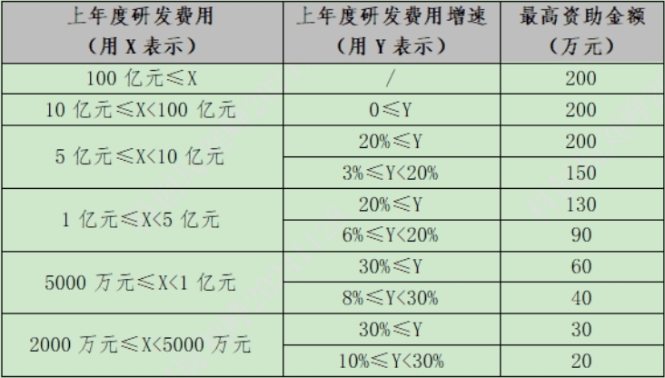 对研发投入费用及增速情况符合条件的研发统计核算企业,按照其上一年度扣除委托外部研究开发费用,每年最高资助200万元。