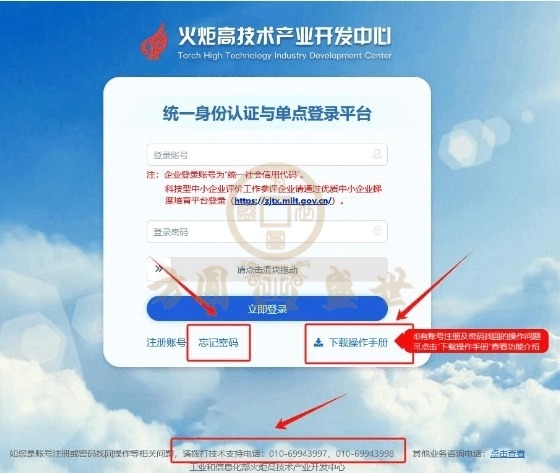 企业进入火炬高技术产业开发中心(https://hjrz.chinatorch.org.cn/login),输入账户密码,点击“立即登录”