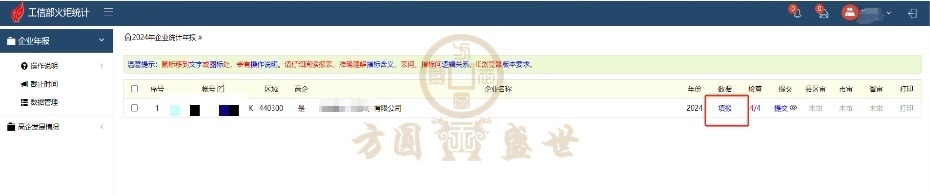 4、点击右侧的“填报”,并开始进行填报企业相关数据。