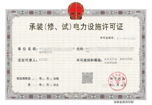 营业执照经营范围需包含“电力设施安装、维修、试验”相关内容。