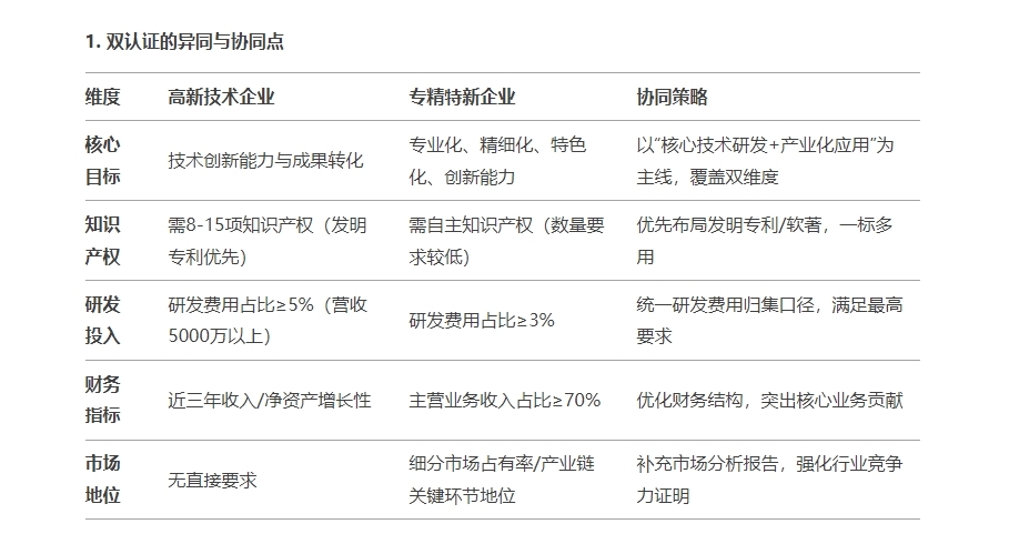 通过以上策略,企业可系统性整合资源,在6-12个月内完成双认证,显著提升品牌价值与政策补贴获取能力。建议优先攻克高新认定(门槛更高),再以高新资质为背书申报专精特新,提高成功率。