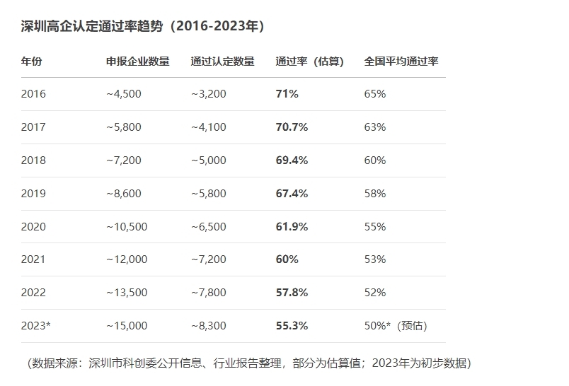 深圳高企申报量年均增长超20%,反映政策红利吸引大量企业参与,但竞争加剧。