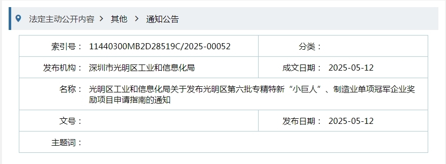光明区支持第六批专精特新“小巨人”企业奖励项目申请指南