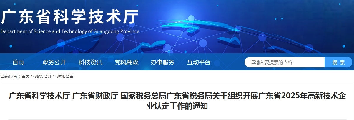 2025年我省高企认定申报在广东省科技业务管理阳光政务平台,以下简称“省阳光政务平台”)开展,全年分3批次受理,每家企业只能申报1次。自2025年5月24日起省阳光政务平台开放高企认定申报。
