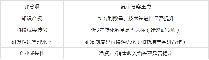 · 要求:复审时需提供新获得的知识产权(如专利、软著),证明企业持续创新。
